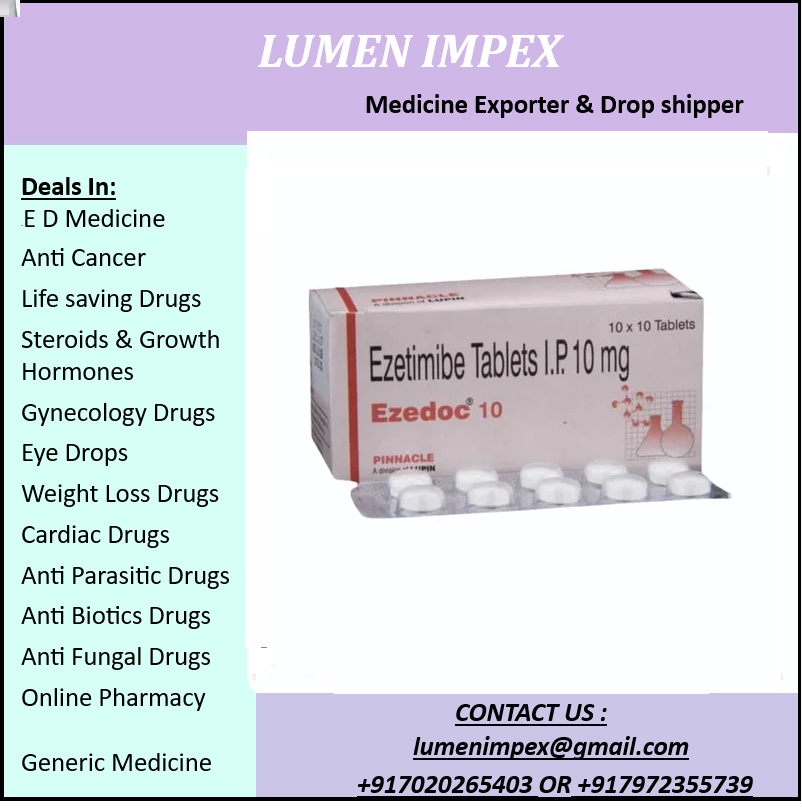 Ezedoc 10 Tablet is a cholesterol-lowering medication containing Ezetimibe (10 mg), primarily used to treat high cholesterol levels in the blood. It belongs to a class of drugs known as cholesterol absorption inhibitors and is manufactured by companies like Hetero Healthcare.