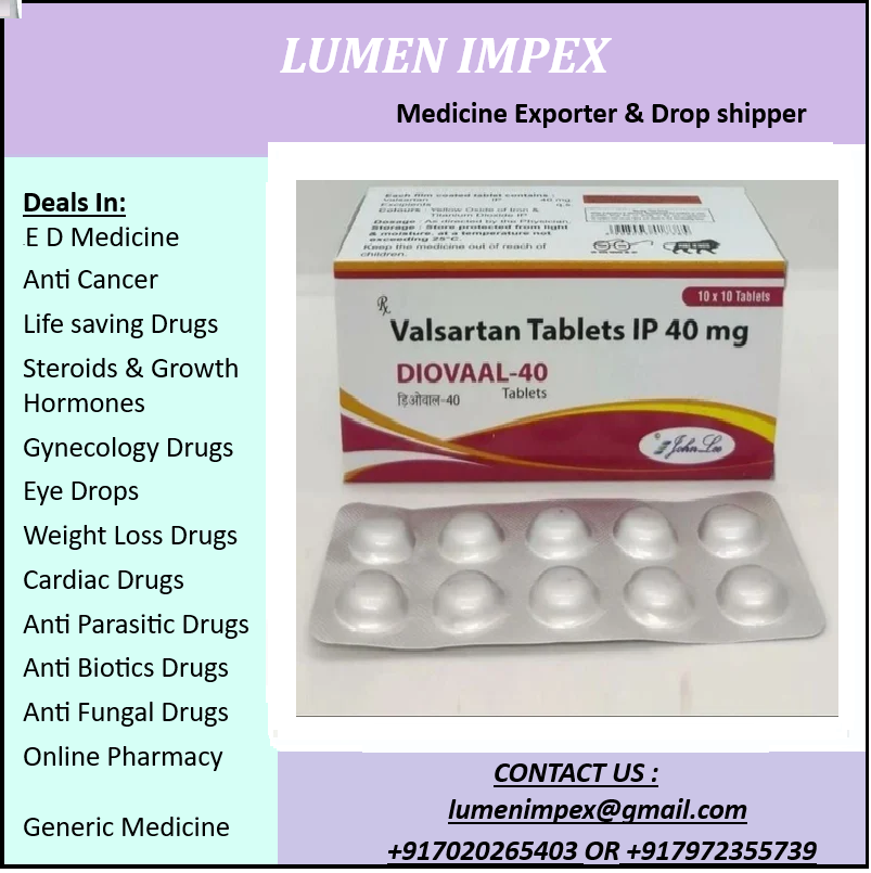 Diovaal 40 mg tablets contain Valsartan, which belongs to a class of drugs known as angiotensin II receptor blockers (ARBs). It is primarily used to manage conditions related to the heart and blood vessels by relaxing blood vessels to improve blood flow. Main Uses Hypertension (High Blood Pressure): It is used to lower high blood pressure in adults and children at least 1 year old. Lowering blood pressure helps prevent long-term complications like heart attacks and strokes. Heart Failure: It helps improve heart function in patients whose hearts cannot pump blood efficiently, reducing symptoms like breathlessness and swelling. Post-Heart Attack Survival: It is prescribed to improve survival rates and reduce the risk of future heart complications in patients who have recently suffered a heart attack. Kidney Protection (Diabetic Nephropathy): It is sometimes used to preserve kidney function in patients with diabetes and high blood pressure.