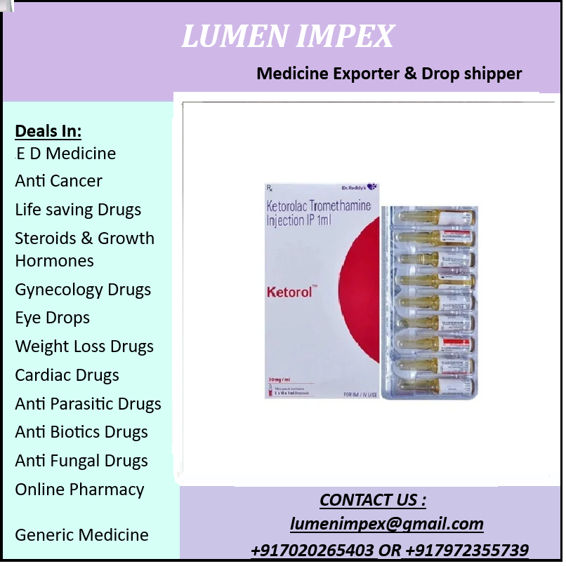 Ketorolac Tromethamine (brand name Ketorol) is a potent non-steroidal anti-inflammatory drug (NSAID) primarily used for the short-term management of moderately severe acute pain.