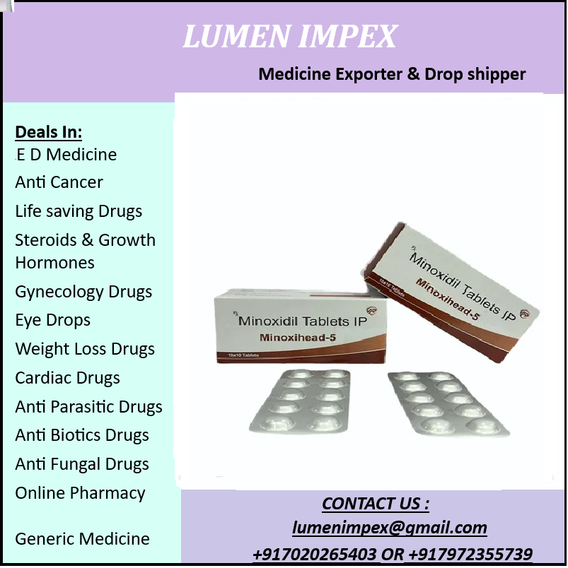 Minoxihead-5 (Minoxidil Tablets USP 5 mg) is a prescription oral medication containing 5 mg of the active ingredient Minoxidil. While originally developed as a potent vasodilator to treat severe high blood pressure, it is now frequently prescribed “off-label“ to treat hereditary hair loss. Key Uses Hair Loss Treatment: It is used to manage Androgenetic Alopecia (pattern baldness) in both men and women by increasing blood flow to hair follicles, which can stimulate regrowth and improve hair thickness. Severe Hypertension: As a vasodilator, it relaxes and widens blood vessels to lower blood pressure in patients who do not respond to standard treatments.