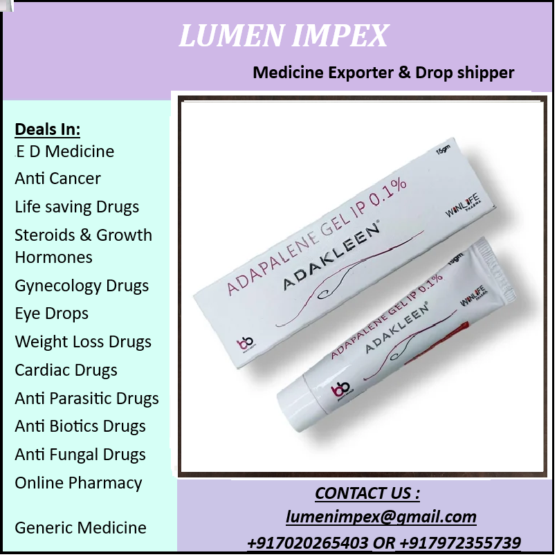 Adakleen (Adapalene gel IP 0.1%) is a topical retinoid primarily used to treat mild to moderate acne vulgaris. It helps clear existing pimples and prevents new ones from forming by targeting several key causes of acne.