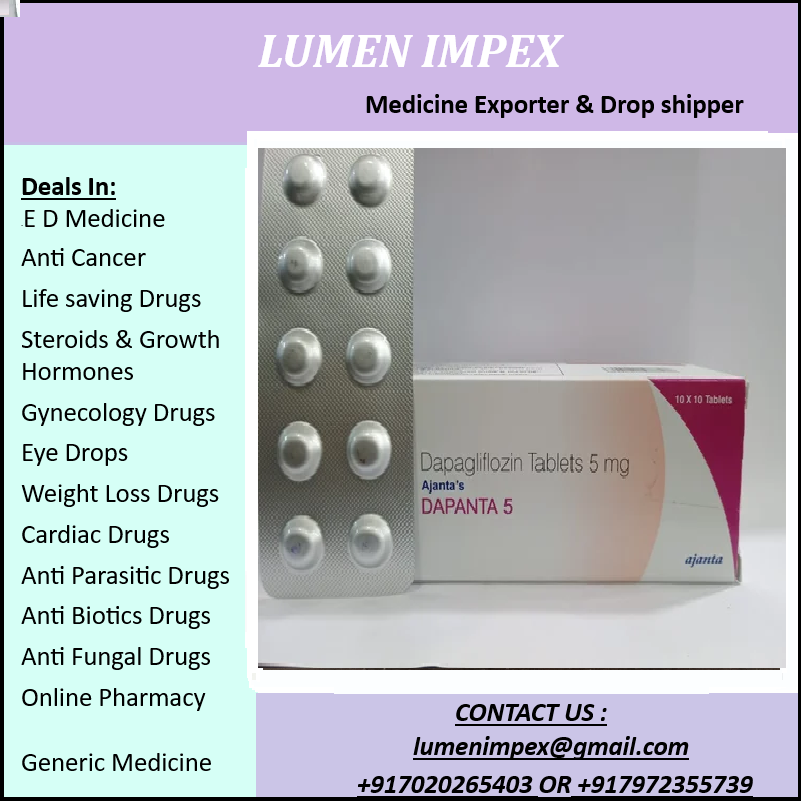 Dapanta 5 mg is an antidiabetic medication containing Dapagliflozin, which belongs to a class of drugs called SGLT2 inhibitors. It works by helping your kidneys remove excess glucose (sugar) from your bloodstream through your urine.