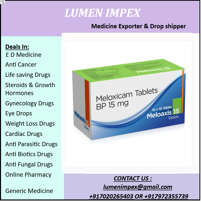 Meloaxis 15 is a nonsteroidal anti-inflammatory drug (NSAID) containing Meloxicam Tablets BP (15mg). It is primarily used to manage pain, reduce inflammation, and alleviate stiffness in various musculoskeletal and joint disorders.
