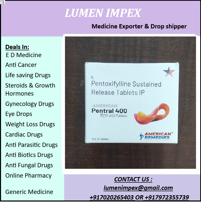 Pentral 400 mg is a sustained-release (or prolonged-release) tablet containing Pentoxifylline, a medication primarily used to improve blood circulation in patients with peripheral vascular disease (PVD) and intermittent claudication