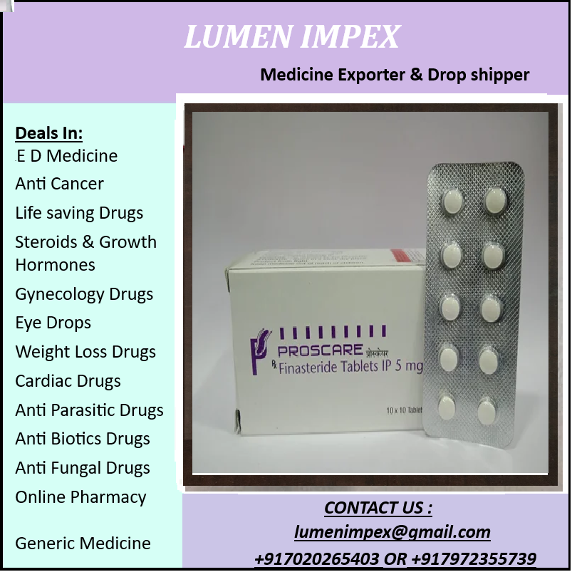 Proscare (Finasteride Tablets IP 5 mg) is a prescription medication primarily used to treat conditions in men related to the hormone dihydrotestosterone (DHT). Primary Uses Benign Prostatic Hyperplasia (BPH): This is the standard use for the 5 mg strength. It helps treat an enlarged prostate by shrinking the gland, which relieves urinary symptoms such as: Difficulty starting urination. Weak urinary stream or a stream that stops and starts. The need to urinate frequently, especially at night. A feeling that the bladder is not completely empty. Reduced risk of sudden inability to urinate (acute urinary retention) and the need for prostate surgery.