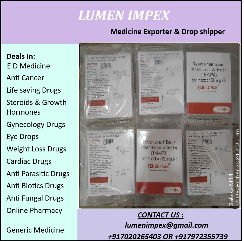 Recombinant Tissue plasminogen Activator ( TNK-tPA) for injection 20 mg kit (TENECTASE )