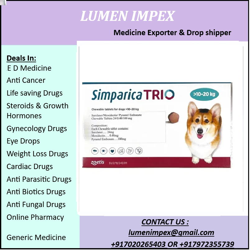 Simparica Trio for dogs weighing 10–20kg is a monthly, liver-flavoured chewable tablet used for the concurrent treatment and prevention of multiple external and internal parasites.