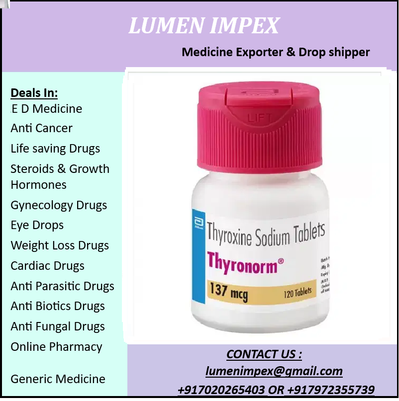 Thyronorm 137 mcg is a prescription tablet containing synthetic thyroxine sodium, used to treat hypothyroidism (underactive thyroid) by replacing the hormone your body lacks, regulating metabolism, heart function, digestion, and brain development, typically taken in the morning on an empty stomach with water, and requiring regular monitoring by a doctor due to potential side effects like shakiness or insomnia.