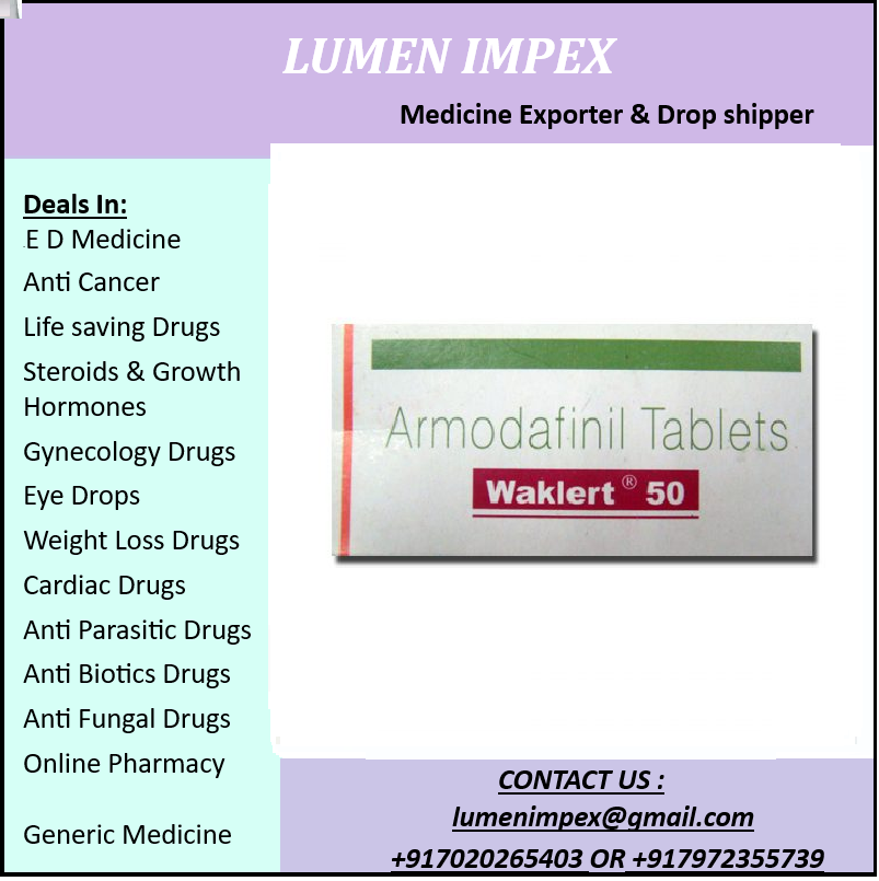 Waklert 50 is a prescription medication containing 50 mg of Armodafinil, a wakefulness-promoting agent manufactured by Sun Pharmaceutical Industries Ltd.. It is primarily used to treat excessive daytime sleepiness associated with narcolepsy, obstructive sleep apnea, and shift work sleep disorder.
