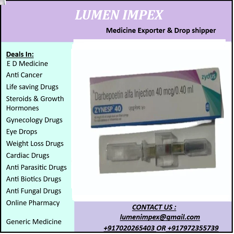 Erythropoiesis-Stimulating Agent (ESA): Zynesp contains Darbepoetin Alfa, used to treat anemia associated with chronic kidney disease (CKD) and chemotherapy by stimulating red blood cell production.
