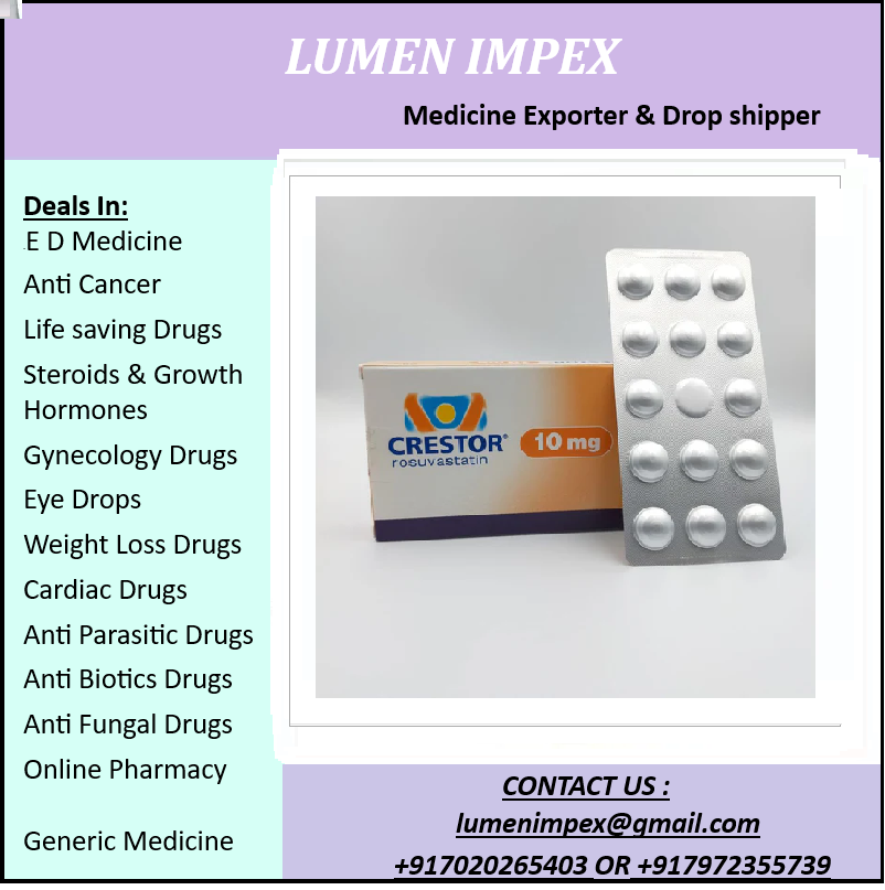 Crestor 10 mg (Rosuvastatin I.P.) is a statin medication used to lower “bad“ LDL cholesterol and triglycerides, and raise “good“ HDL cholesterol, thereby reducing the risk of heart attacks, strokes, and atherosclerosis (plaque buildup in arteries). It works by blocking an enzyme in the liver that makes cholesterol, and must be used alongside diet, exercise, and lifestyle changes for best results, often taken daily at the same time. Common side effects include headache, muscle pain, or stomach ache, but it's crucial to take it as prescribed and consult a doctor for concerns.