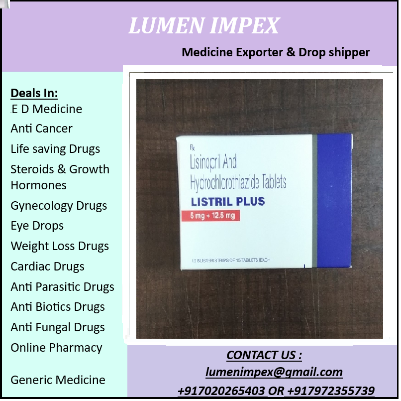 Listril Plus (5 mg Lisinopril + 12.5 mg Hydrochlorothiazide) is a combination prescription medication primarily used to manage hypertension (high blood pressure). By effectively lowering blood pressure, it helps reduce the long-term risk of severe cardiovascular events like heart attacks and strokes.